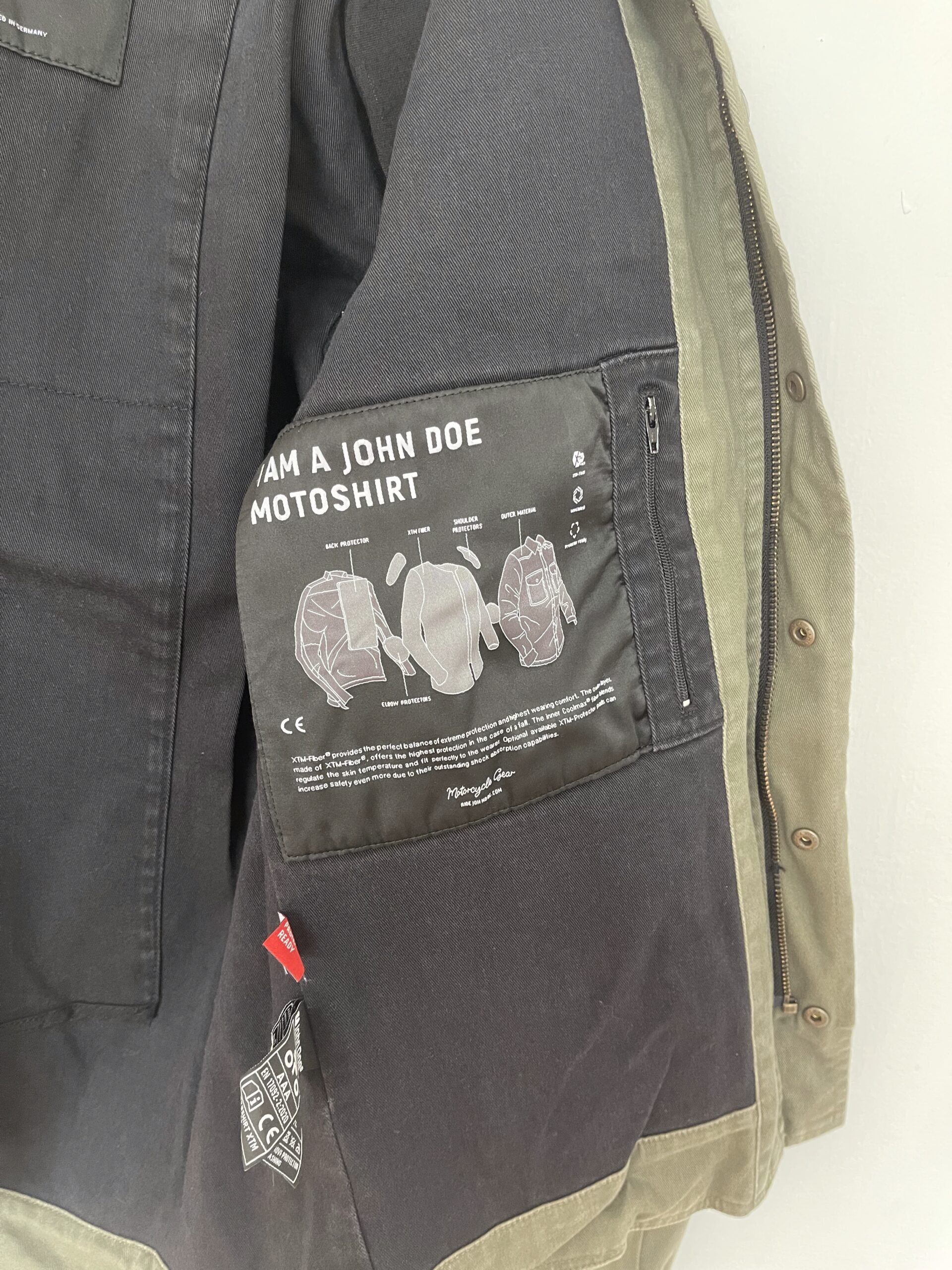John Doe MotoShirt XTM, dış katmanda tam pamuk kumaş, iç katmanda ise XTM® astar ile üretilmiştir. Bu astar, son derece dayanıklı %100 Kevlar katman içerir.